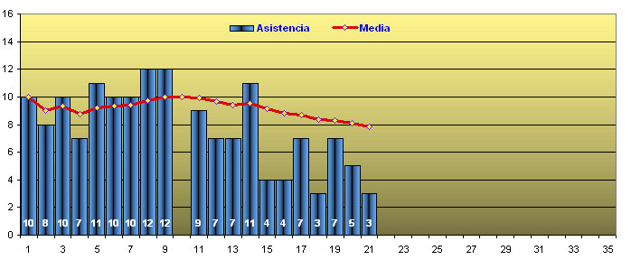 | TOTAL | 10 | 8 | 10 | 7 | 11 | 10 | 10 | 12 | 12 | A | 9 | 7 | 7 | 11 | 4 | 4 | 7 | 3 | 7 | 5 | 3 | - | - | - | - | - | - | - | - | - | - | - | - | - | - |
